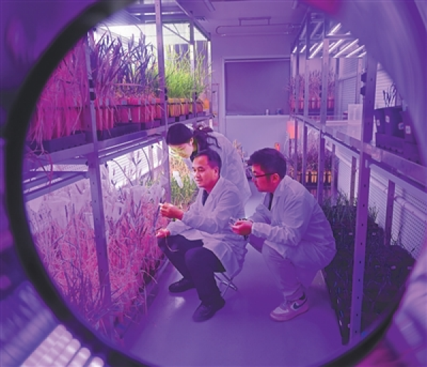 科研人员正在进行科研攻关。智能育种时代,离子舱、逆境舱、加代舱等正在悄然改写育种方式。