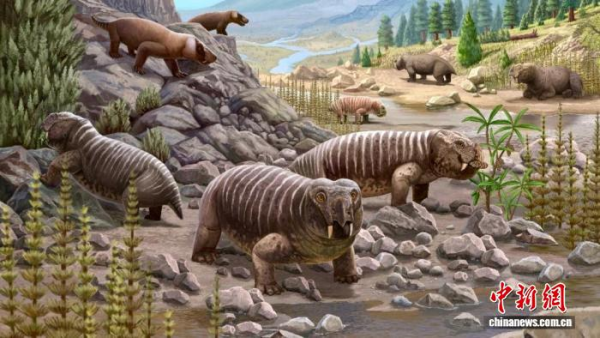 二叠纪晚期甘肃景泰周边地区四足动物组合场景复原图。叶健豪 绘